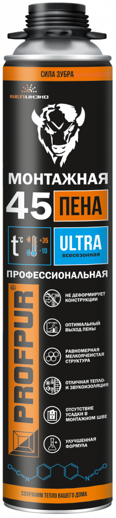 Пена монтажная профессиональная Profpur ultrа, всесезонная, 750мл